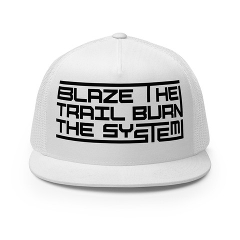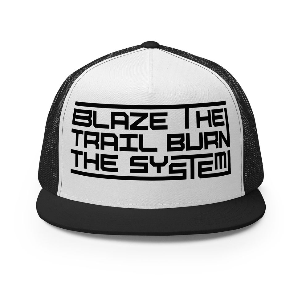 The Blaze The Trail, Burn The System Trucker Cap is for those who carve their own path — and torch the rulebook behind them. Featuring the rebellious slogan, this cap is built to disrupt.